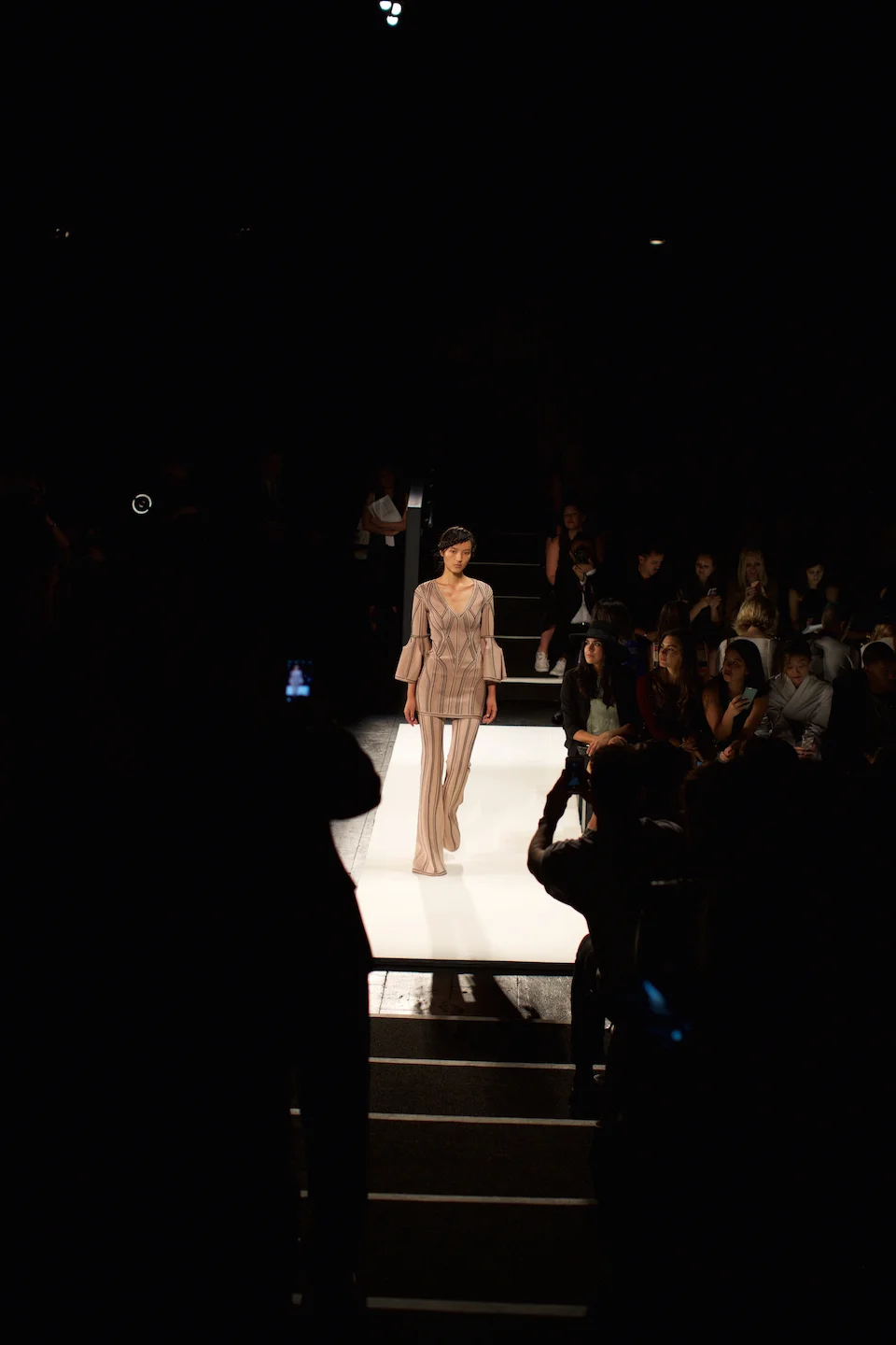 Paris fashion week is about to begin on the other side of the pond, but it wasn’t so long ago we were attending a french brand’s show in New York. Well a french couturier later acquired by an american designer, but you know….tomayto, tomahto. It was the 30th anniversary of the brand I wore religiously in high school, and I was blown away not only by what I saw, but more so by what I didn’t see. Hérve Léger’s Spring/Summer ’16 collection didn’t have one bandage dress in sight, instead the line evolved to innovative surface design and high-impact textured patterns created by hand-weaved techniques like macramé, knotting and intricate floral appliqué work. Do not fear…the bodycon silhouettes were still very much present, but the addition of flared trousers to the line added an element of cool, that I couldn’t have predicted would look so damn slick paired with their particular aesthetic. Also, anyone putting bell sleeves on the runway this season has my vote, and the ones presented were beautifully structured and brought a contemporary edge to the style usually reserved for flowing fabrics. The collection was followed by a curated finale of retrospective signature pieces from 2009 until present. Each piece embodied the vision and the evolution of the brand’s iconic techniques and took me on a pleasant stroll down memory lane. One thing is certain…Heve Leger will no longer be a brand synonymous with school dances, YSL tribute pumps, or my closet archives. I want me some printed Hérve pants and I want them now!